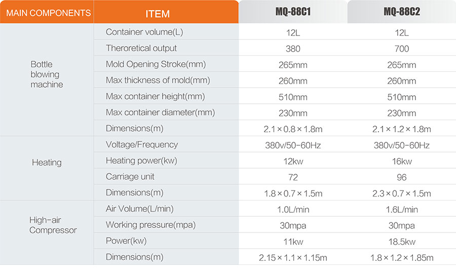 Action and blowing are divided into two parts to meet the needs of blowing bottles, different movements of different air pressure, to achieve high pressure blowing products.